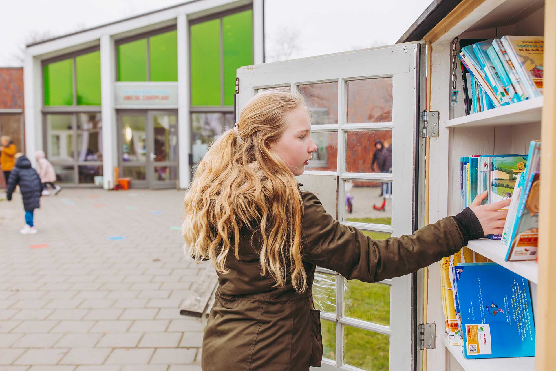 Onze school staat letterlijk midden in het dorp. Kinderen spelen op het plein tussen het dorpshuis, de kerk en de speeltuin, en lopen zó het klaslokaal binnen.